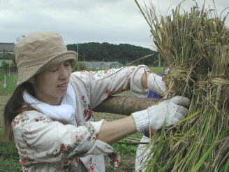 稲刈りは2回目の体験でしたが、たばねて干すことまでは初めてで、なかなか難しかったです。